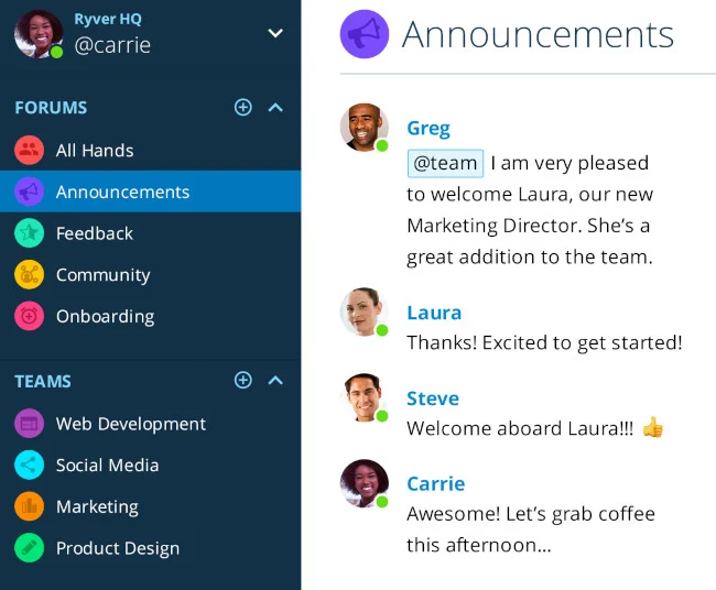 Like Slack, Ryver permits you to convey through open discussions, private gatherings, and direct messages. It can likewise settle on voice and video decisions with up to 5 clients for each call. Assuming that you have a Zapier account, you can likewise associate Ryver to your most loved applications.